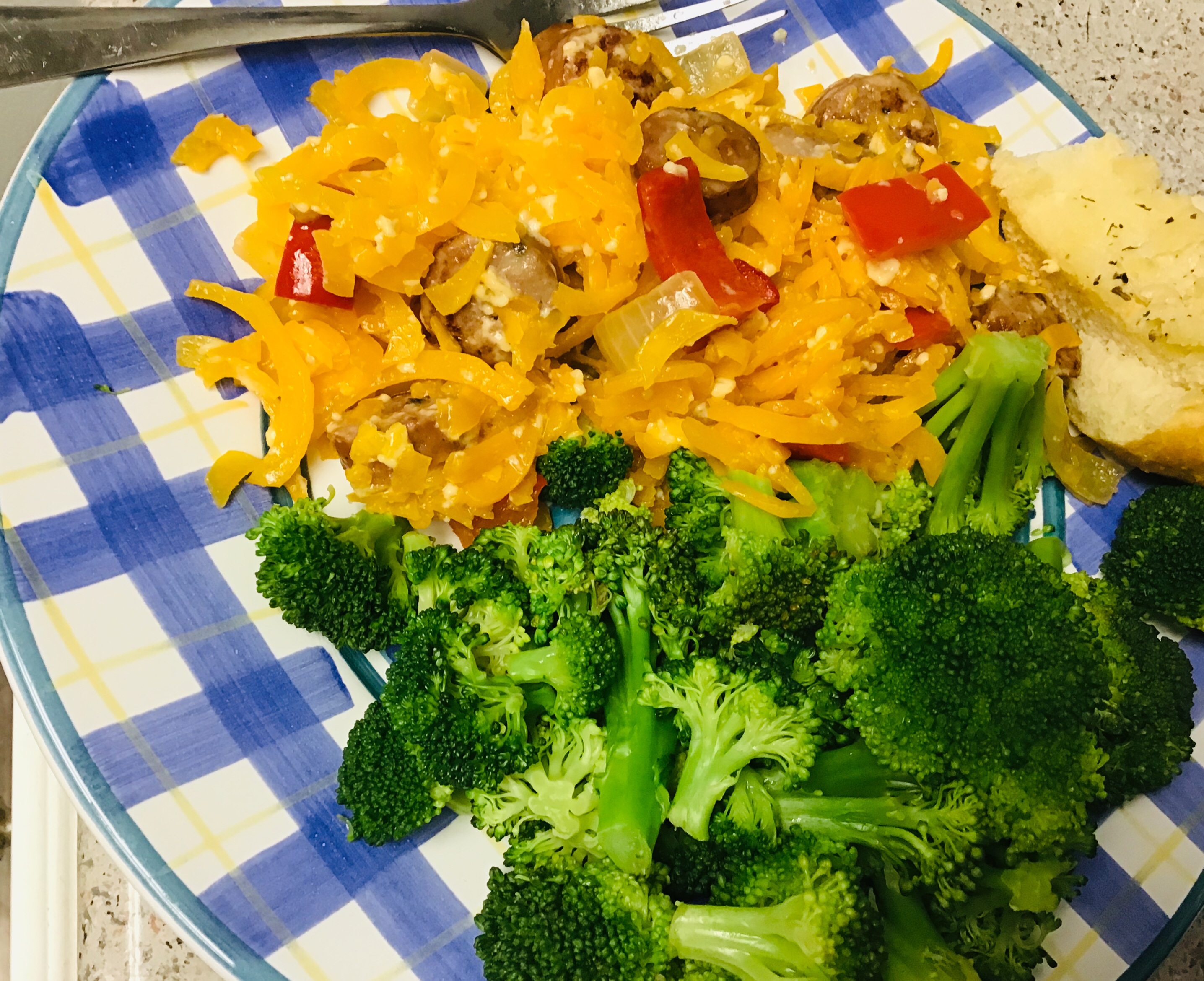 I must say that was pretty darn good! The onions, bell peppers, and spice really came through with a zing. Yummy! The butternut squash has significantly less carbs than traditional pasta, but I am not against carbs. I am for less overall calories in a meal and the squash has about 1/4 of the calories of traditional pasta.